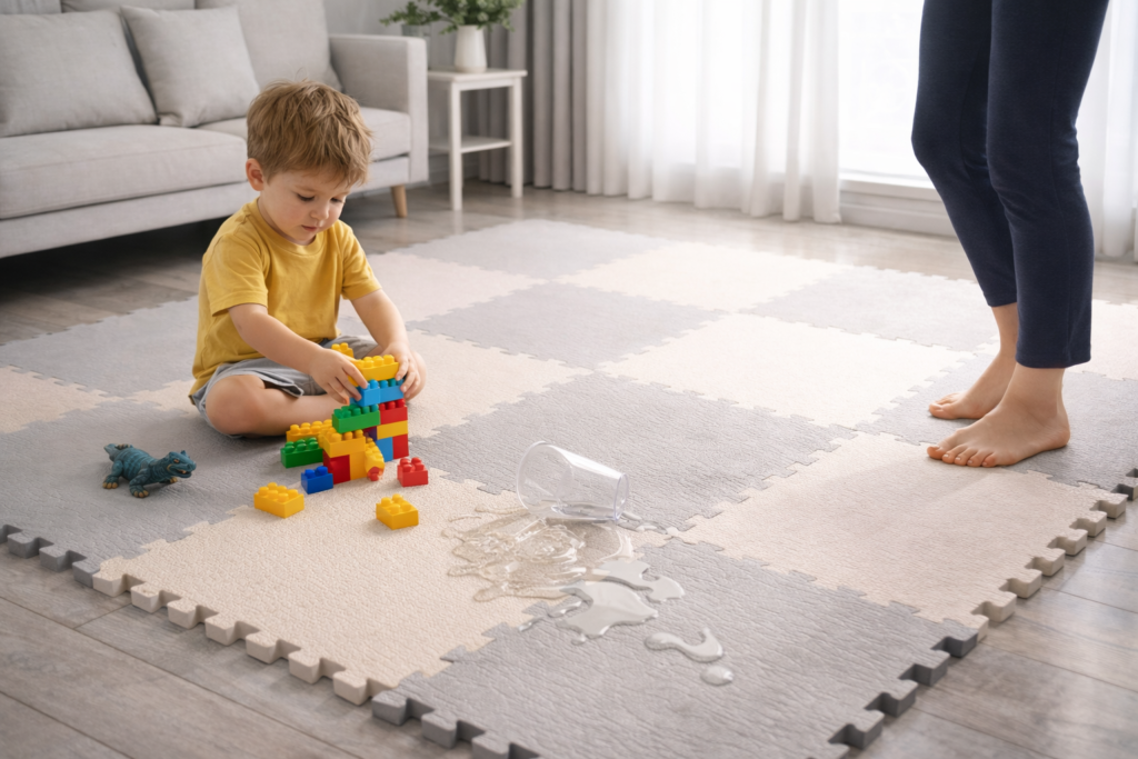 جيران تحتك بيشتكوا؟ السجاد العادي مش بيكتم صوت الجري ولا خبط اللعب وهي بتقع.